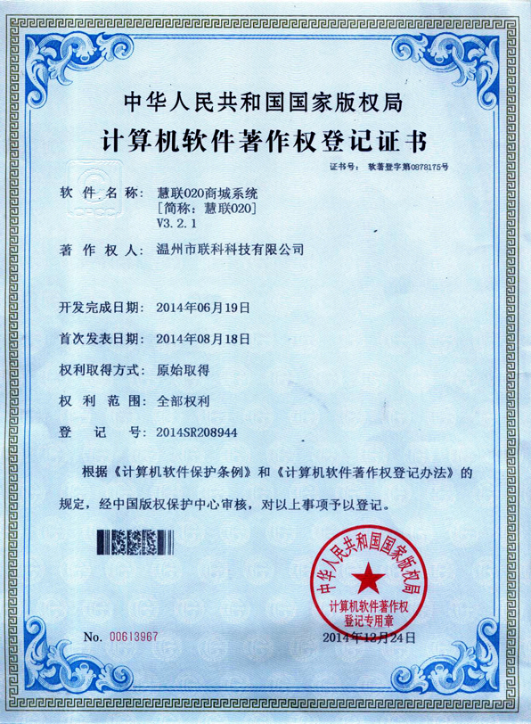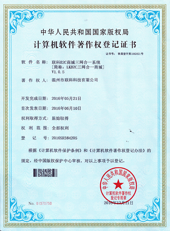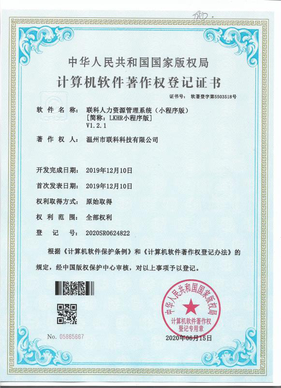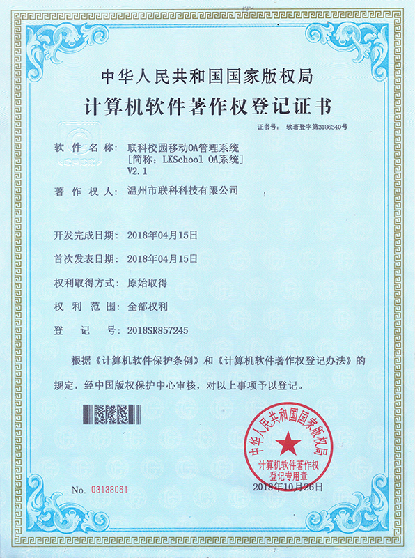 聯科教培行業智慧運營系統V1.0登記證書(2022R11L2324133)