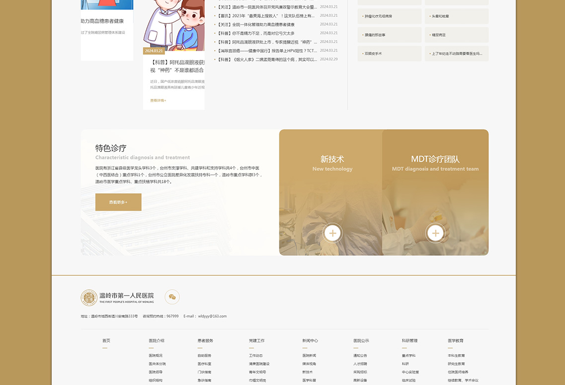 溫嶺市第一人民醫院始建于1941年,是一家集醫療、教學、科研、預防保健為一體的三級甲等綜合醫院。是溫州醫科大學附屬醫院、臺州學院附屬醫院、臺州學院溫嶺臨床醫學院、浙江大學醫學院附屬邵逸夫醫院合作醫院,醫院連續10年在“中國縣級醫院競爭力”排行榜中居全國百強前十名。曾先后榮獲浙江省抗擊新冠肺炎疫情先進集體、浙江省文明醫院、浙江省文明單位、臺州市模范集體,溫嶺市“超創干”先進集體等榮譽稱號。在三級公立醫院績效考核國家監測指標排名中,醫院位于A級序列。