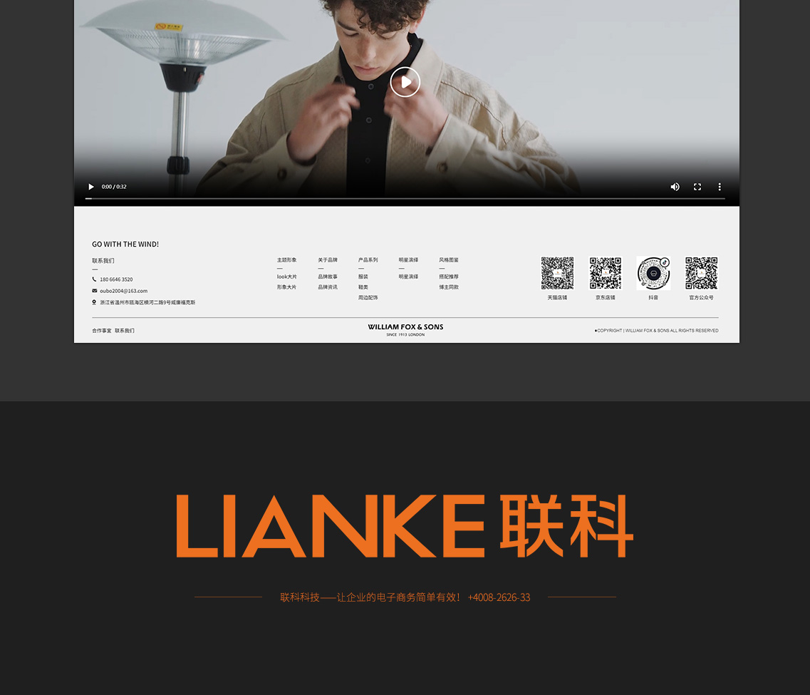 WILLIAM FOX & SONS品牌始創于1913年的英國倫敦。1895年,英裔美國人威廉福克斯先生,在美國緬因州霍爾頓的卡爾福克斯大街上開設了名為WILLIAM FOX &SONS的服飾店,專營男士定制服飾與運動用品。小狐貍是WILLIAMFOX & SONS的品牌標識,象征著機智、敏捷。