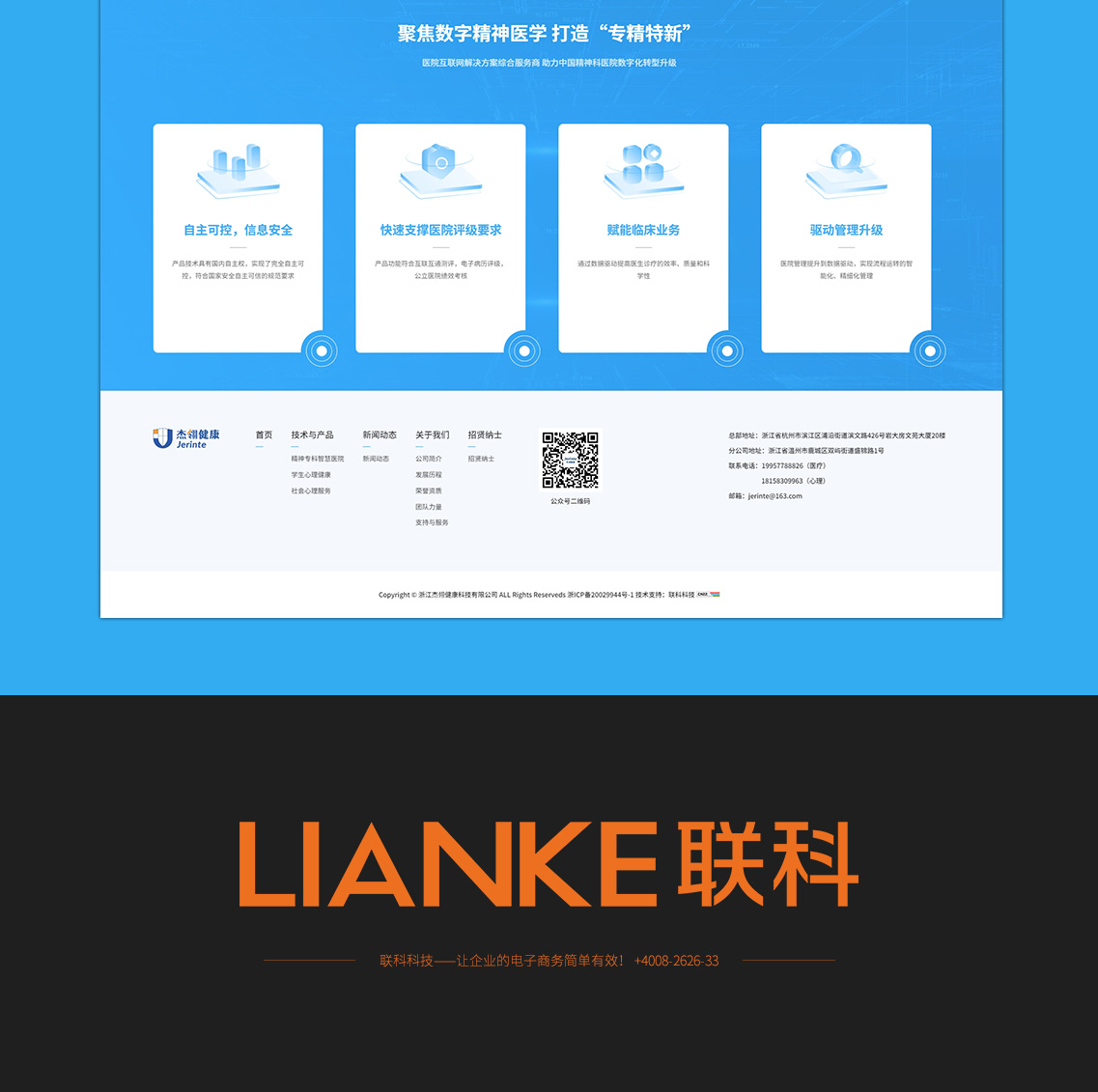 浙江杰翎健康科技有限公司 是一家專(zhuān)注于心理健康服務(wù)產(chǎn)品化與精神專(zhuān)科診療信息化技術(shù)研發(fā)的高新技術(shù)企業(yè)。自公司成立以來(lái),我們始終秉持“秉承“科技引領(lǐng)未來(lái),創(chuàng)新驅(qū)動(dòng)發(fā)展”的理念,不斷推動(dòng)醫(yī)療行業(yè)的數(shù)字化轉(zhuǎn)型和智能化升級(jí),能夠?yàn)榭蛻籼峁┒ㄖ苹慕鉀Q方案和優(yōu)質(zhì)的服務(wù),同時(shí)也在社會(huì)責(zé)任方面積極履行,致力于為社會(huì)創(chuàng)造更美好的未來(lái)。