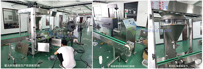 ▲星火生產(chǎn)車間-瓶裝粉劑灌裝生產(chǎn)線-裝配現(xiàn)場