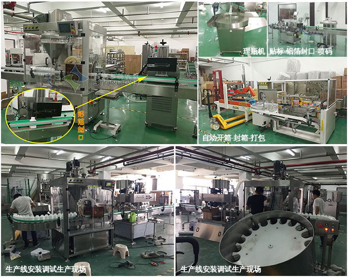 ▲星火生產(chǎn)車間-瓶裝粉劑灌裝生產(chǎn)線(全自動粉劑定量灌裝機+自動上蓋旋蓋機)-生產(chǎn)調(diào)試現(xiàn)場