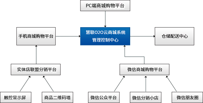 【慧聯O2O云商城系統】采用云計算架構,把PC網上商城系統、手機商城系統、微信商城系統和實體店聯盟分銷分賬系統融合為一體,以一個云數據中心、一個云管理控制中心、四個購物平臺為核心,結合線下實體店體驗和手機購買支付的O2O模式,達到商品、訂單、會員、財務的數據同步,為企業開展電子商務實現統一的銷售和管理,全面支撐企業開展全網零售和分銷運營。企業通過實施該系統,即可快速建立一個融合了B2C和O2O模式的移動互聯網電子商務平臺。