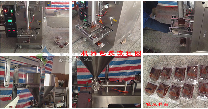 4、適用于有流動(dòng)性的液體及粘性液體、如果醬、面醬、辣椒醬等多種液體和膏體的定量灌裝及全自動(dòng)包裝;