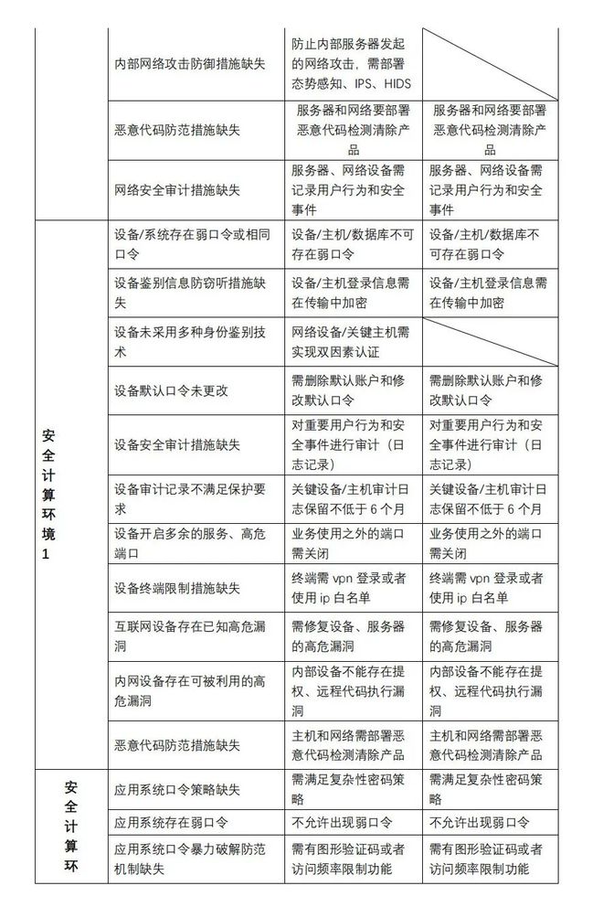 本文參考了《T/ISEAA 001-2020 網(wǎng)絡(luò)安全等級保護測評高風(fēng)險判定指引》,整理出了等保三級、二級所需產(chǎn)品和要求。研發(fā)或運維人員通過該表可直觀了解自己的系統(tǒng)與等保要求存在的差距,并做出相應(yīng)整改。